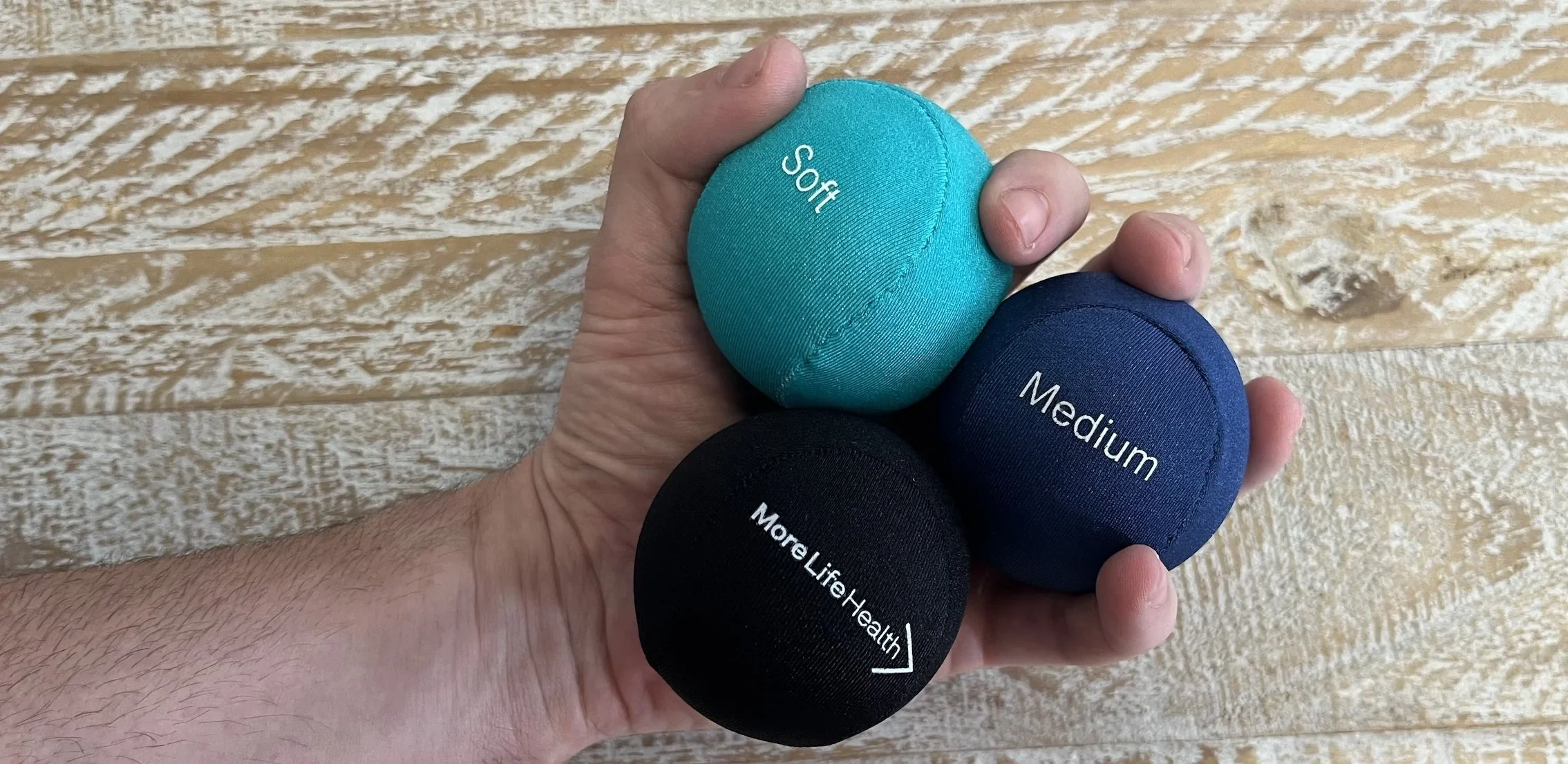 Your new More Life Health therapy balls come in three resistances: soft (green), medium (blue), and heavy (black). This allows you to progress as your strength improves.